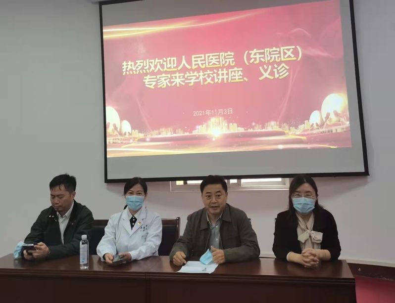 为了关爱广大教职工的身体健康,提高健康保健意识,2021年11月3日下午,校工会、妇委会特别邀请武汉大学人民医院(东院区)大内科专家教授,来我校举行公益讲座和义诊。