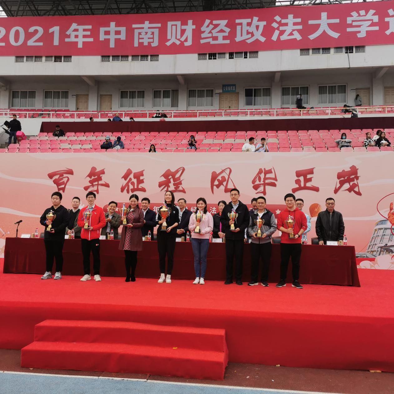 2021年11月4日上午,本年度运动会在南湖校区体育中心正式开幕,校党委书记栾永玉,校党委副书记、校长杨灿明,校党委副书记、纪委书记侯振发,校党委常委、副校长闫平,校党委常委、副校长覃红,校党委常委、副校长姚莉,校党委常委、副校长刘仁山,副校长邹进文,校党委常委、副校长申祖武,校党委常委、党委组织部部长兼党委统战部部长刘琳琳,校长助理兼国际交流部部长、港澳台办公室主任徐涤宇出席开幕式。