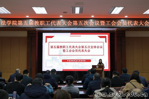 院教代会主任王广辉作法学院2021年工会工作报告。报告指出,法学院工会坚持党的全面领导,以“五力、五促”为举措,充分发挥了工会组织的优势和特点。报告从永葆工会政治本色、立德树人高效落实、暖心工会落地落细、活力工会勇创佳绩、民主工会依规工作等五个方面进行了详细的总结。报告也指出目前存在的不足之处,强调在今后的工作中将继续在特色活动方面下功夫、出新意、见真招,增强学院教职工队伍的凝聚力与战斗力。