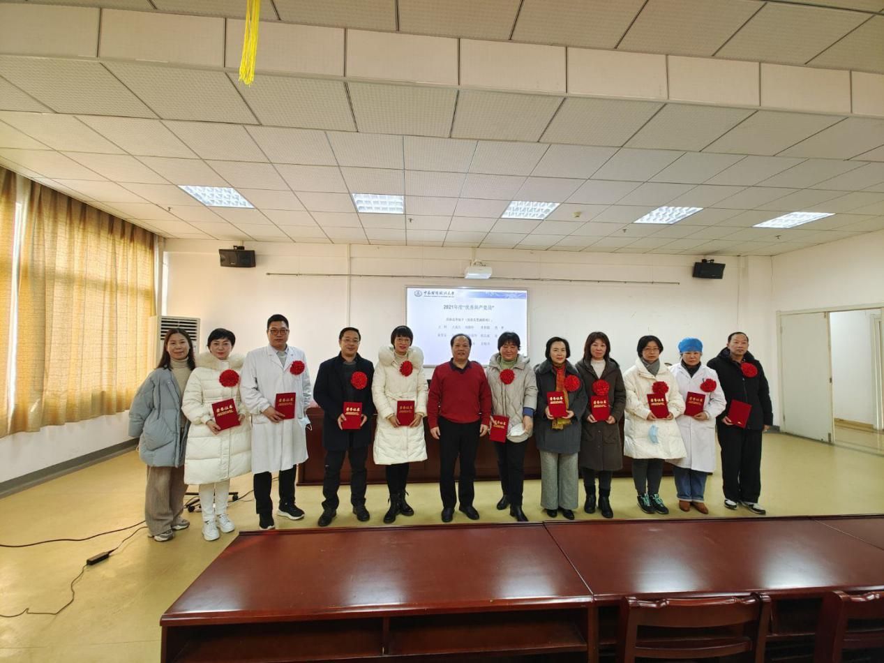 副院长刘晓玲宣读了校医院系列表彰决定。与会领导分别为校医院2021年度“优秀共产党员”、技能比赛获奖者和“优秀工作者”颁奖。
