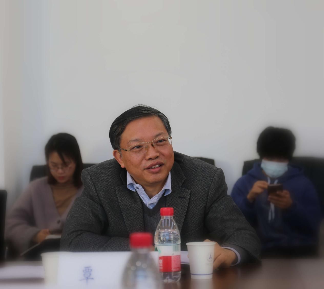 法学院院长陈柏峰详细介绍了学院发展历史沿革,并就“双一流”建设以来法学院学科建设取得的成绩进行了汇报。近年来,法学院以法学一流学科为重心,建设法学与经济学学科群,立足办学传统与优势,以经济社会发展的重大战略需求为导向,作出“财经政法深度融通”的战略性决策。学校和法学院坚持科学谋划、不懈努力,依据学科发展的内在逻辑,开展了卓有成效的建设,建设措施有力,法学学科实现了跨越式发展。尤其在国际化办学、智库建设、科学研究和人才培养等方面取得了显著成绩;陈柏峰还重点向李学初一行介绍了法学学科2021年度十大事件。
