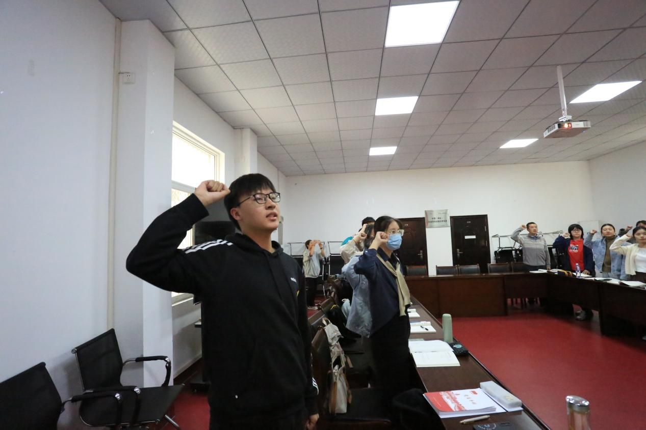 活动第二项,在外语学院本科生李柏华的带领下,全体党员重温入党誓词,牢记入党的初心与使命。