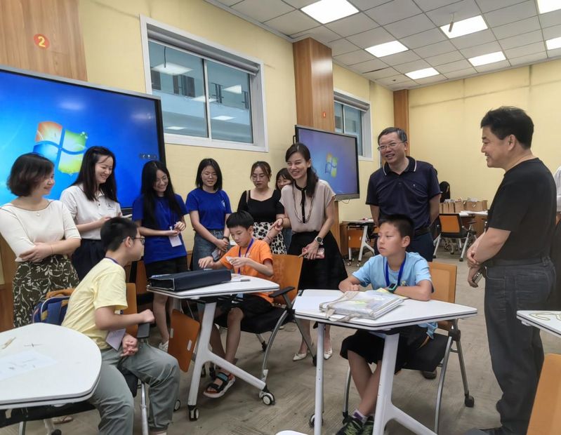 在文波楼“梧桐树·童心筑梦”暑期数学公益辅导班教室,覃红一行看望了参与服务的志愿者和小朋友,并饶有兴致地与小朋友们交流解题思路。“梧桐树·童心筑梦”暑期数学公益辅导班是校工会、妇女委员会与统计与数学学院聚焦职工所需、子女所盼、单位所能,积极创建家庭友好型工作场所,联合开展的校内社会实践活动,受到了学校教职工的广泛欢迎。据悉全校共有近100名教职工子女报名参加此次公益辅导班,极大缓解了暑期坚守工作岗位教职工子女无人看护的难题。家长们通过各种方式对活动予以高度评价,并期待明年活动越办越好。