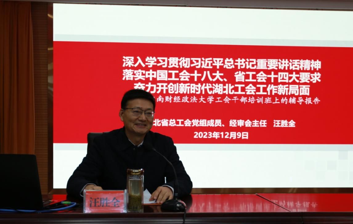 湖北省总工会党组成员、经费审查委员会主任汪胜全作辅导报告