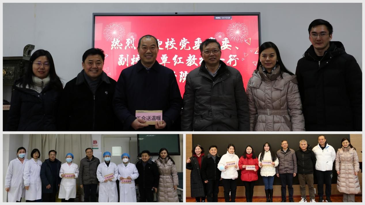 后勤保障部部长徐警武,后勤保障部党委副书记、纪委书记、工会主席万里雪,工商管理学院党委副书记朱艳平,校医院副院长汪勇、刘晓玲分别参加相关环节慰问。