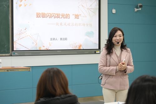 (通讯员:舒鑫才 蒋贺瑶)流光溢彩庆妇女,八方欢乐颂春归。为丰富我院女性教职工的精神文化,帮助其发掘与展现自身风采魅力。3月5日下午统计与数学学院三八妇女节“致敬闪闪发光的她——做乘风破浪的职场女性”讲座于文波楼203智慧教室顺利举办。院党委副书记王瑄等部分女性教师参加本次讲座,本次讲座由会计学院副教授黄洁莉主讲。