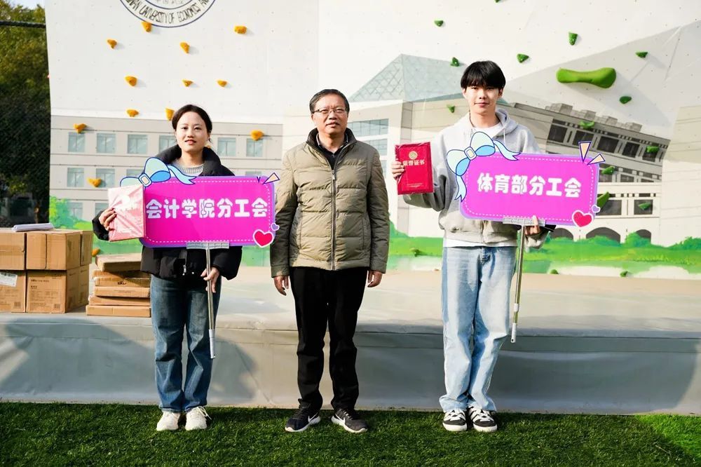 工会副主席吴凡、吴艳,体育部副主任黄宏远为三等奖获奖单位颁奖