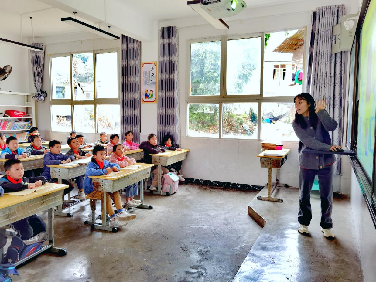 谈及支教过程中印象深刻的事情,金妤恩提及最近的一件小事,一名她所教的四年级小学生在学校里突然哭了,最开始她不以为然,因为这种事情常有发生,但是在了解其背后的原因后,她的心里受到很强的触动。这名学生是因为想念在外打工的妈妈,而妈妈却需要下次寒假才能够回来。一句“我想妈妈”道尽了许多的心酸。“这里的孩子大多没有父母的陪伴,教育条件也很落后,他们应当和千万个城市的同龄的孩子们一样,拥有这种受同等教育条件的机会,但他们由于各种地理或经济原因,甚至没有教授艺体美等相关科目的老师,大部分情况下都是一个班两个老师需要上全部的科目,和我小时候完全不一样。”金妤恩如是说道。