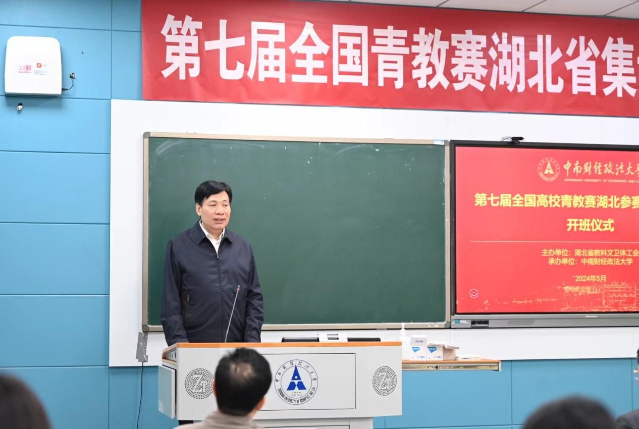 湖北省教科文卫体工会主席熊晓泉、校党委常委、副校长刘仁山、湖北省教科文卫体工会副主席颜立琼以及来自兄弟高校的指导专家、参赛教师、我校工会常务副主席、教务部、教学督导与评估中心、教师发展中心、信息管理部、法学院等单位负责人等出席开班仪式。