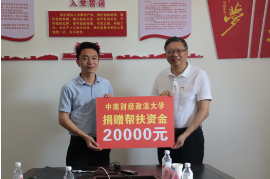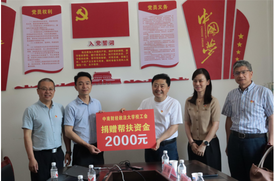 覃红代表学校捐赠帮扶资金20000元;研究生院党支部和工会、妇女委员会党支部分别捐赠帮扶资金3800元和2000元。