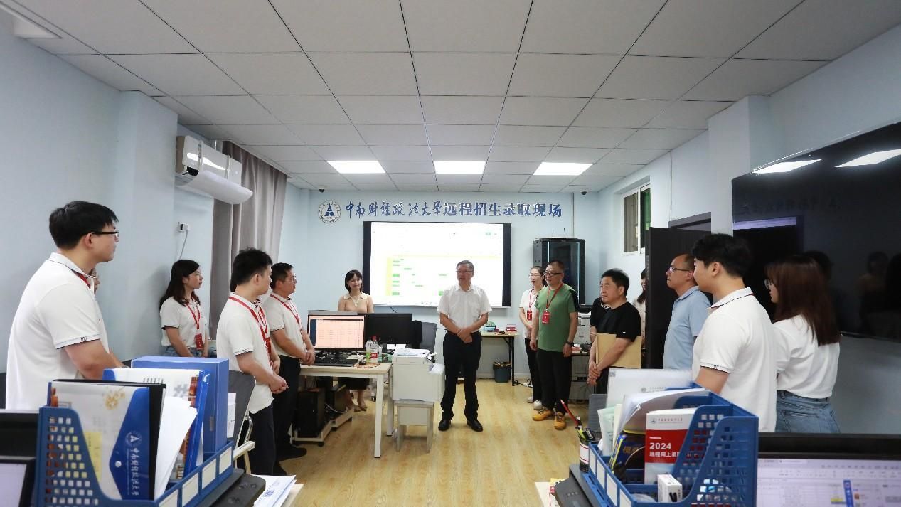 在学校本科招生现场,覃红详细了解学校本科招生进度情况,学工部部长王前哨作简要情况介绍。覃红强调,招生工作是学校立德树人的第一个环节,大家要以高度的责任心为学校把好第一道关口。