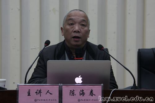 12月24日下午,法学院党委组织的“仰高线,知底线——关于两部党内法规的政策研究” 专题学习报告会在文泓楼学术报告厅举行。华中科技大学现代领导科学与艺术研究中心主任、公共管理学院博士生导师陈海春教授担任主讲人,我校法学院党委袁桂君副书记担任此次讲座的主持人。法学院教工党员和部分研究生党员参加了此次学习报告会。