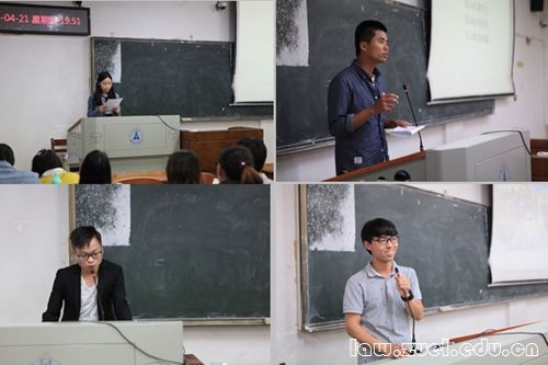 4月21日晚,法学院本科生2014级党总支开展“两学一做”系列活动之“纪念红军长征胜利八十周年——从习近平总书记系列重要讲话中看当代长征精神”主题活动,张玉婷老师和胡坤老师莅临现场,2014级全体党员和入党积极分子参与活动,秦德鑫同志担任主持人。