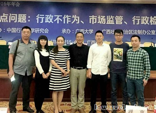 2016年10月15、16日,中国行政法学研究会2016年年会在广西南宁成功召开。本次会议由中国行政法学研究会主办,广西大学、广西壮族自治区法制办公室承办。中国法学会会长王乐泉,中国法学会副会长、司法部副部长张苏军,广西壮族自治区党委常委、政法委书记温卡华,广西壮族自治区政府副主席胡焯,广西大学党委书记刘正东,以及来自全国各地的行政法专家、实务工作者和媒体代表等300余人参加了此次年会。我院方世荣教授、杨勇萍副教授、朱茂磊博士生、刘峰铭博士生等应邀出席本届年会。
