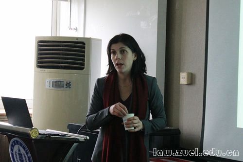 劳拉副院长介绍了俄亥俄州立大学优越的地理位置,展示其优美的校园环境,并以24个图书馆和规模巨大的体育馆为例说明俄亥俄州立大学雄厚的资源。俄亥俄州立大学法学院现有学生550名,他们来自世界各国,因此,在那里学习,可以认识全世界的朋友,体验丰富多彩的课外活动。
