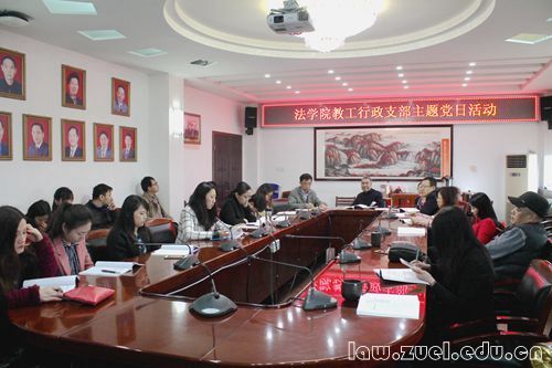 通讯员(龙美华 刘璇 柯炜娜)4月6日,法学院教工行政活动主题党日活动于文治楼六楼会议室举行。法学院党委肖崇明书记、党政办主任李晓老师、教工行政二支部书记侯竟老师以及教工行政一支部、二支部全体党员老师参与此次活动,活动由研究生办公室主任曹丽萍老师主持。