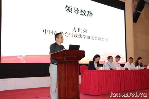 在本次年会开幕式上,中国行政法学研究会副会长、湖北省行政法学研究会名誉会长方世荣教授代表中国法学会行政法学研究会致辞,对两省合作共办年会的传统给予高度赞扬,对主办和承办方的共同劳动表示感谢,并预祝大会圆满成功。