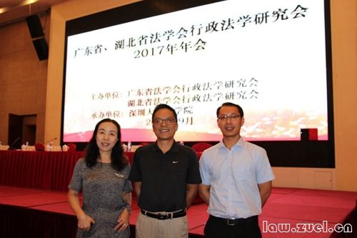 通讯员(法学院新闻中心)9月24日,广东省法学会行政法学研究会、湖北省法学会行政法学研究会2017年年会在深圳市麒麟山庄隆重举行。本次年会由广东省、湖北省两省法学会行政法学研究会主办,深圳大学法学院承办。法学院宪法与行政法学科点方世荣教授、杨勇萍副教授以及查云飞教师应邀参会。