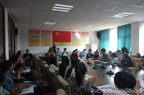 通讯员(张贵声) 10月26日下午,法学院研究生预备党员培训班开幕及“党的基本理论知识”讲座在文治楼515举行。此次活动是由法学院顾蓬老师主持,法学院党委副书记、法硕学生党总支书记潘丰文对法学院研究生预备党员培训班进行了发言,法学院曹丽萍老师、法律硕士教育中心李杨老师参加了开班式。