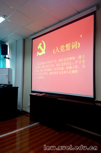 本次开班由法学院党委副书记、法硕学生党总支书记潘丰文对预备党员从培训班的内容、要求、形式以及对预备党员的期望进行了说明。法学院顾蓬老师宣布了预备党员培训班的纪律,要求各预备党员做到不缺席,不迟到,不早退,缺课者将取消培训资格,延期转正。随后进行入党宣誓、唱国歌。