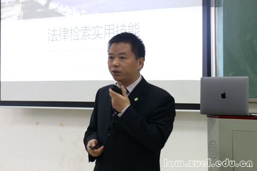 刘美邦律师则从意识、渠道、应用、趋势四个方面向在场同学分享了实用的法律检索技能。他首先强调指出,“搜商”和情商、智商一样重要,而“搜商是衡量获取知识的效率”。掌握检索技能可以大大提升学习与工作效率,作为法科学生一定要注重对检索意识的培养,善于利用检索工具。就法律检索的渠道,刘律师强调要学会合理利用网络、书籍等多种渠道,并通过对大量不同类型信息检索的现场演示,教授了诸多实用的法律检索技能。非常富有启发意义的是,刘律师以一个现实的案例为例,详细分析了在已知信息较少的情况下如何通过检索获取所需信息。最后,刘律师分析了法律检索的趋势,将之概括为“大方向,大未来”,并展望了编辑时代、数据库时代以及大数据时代的法律检索。