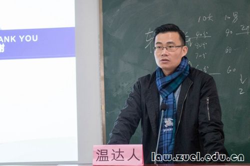 温达人律师则对大一的同学们提出了三点要求:第一,不要浑浑噩噩,将成绩搞好,并做一些自己自豪且终生难忘的事。第二,如果想进最好的律所,自己要有能力,有本事,这些都要靠自己积累争取。第三,一定要有自信,而自信源于能力。一定要真诚待人,讲礼貌,有风度。