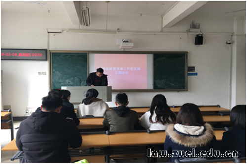 (通讯员 张贵声)3月8日上午,法学院2017级硕士研究生各党支部三月份主题党日活动在文添楼举行,由各班党支书主持会议,全体党员同志、入党积极分子和部分群众参与了此次会议。