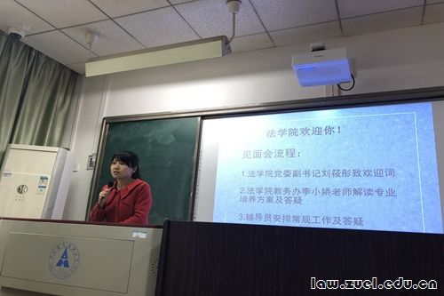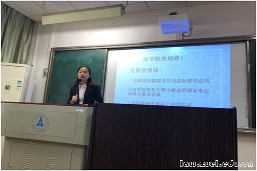 见面会上,刘筱彤副书记首先代表法学院师生对36位新转入同学表示热烈欢迎,希望同学们可以快速融入法学院的学习生活,并在未来的学习生活中提早规划,也对4名转出同学给予殷切祝福,期望他们能找准自己的方向。同时也对学院学生工作、学生工作团队、法科学生的鲜明特点做了全面的介绍。
