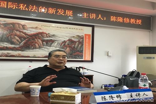 此次课程共分为四讲,陈隆修教授分别从“中国思想下的全球化选法规则”、“美国选法革命及其启示”“中国思想下的全球化管辖规则(上)、(下)”深入分析晚近国际私法的新发展。
