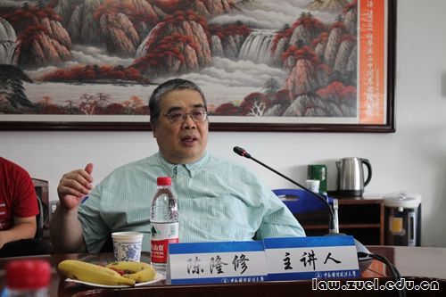 通讯员(贺增磊)4月28日,应我校副校长刘仁山教授的邀请,我国台湾地区著名国际私法学者、东海大学法律学院荣誉教授、我校客座教授陈隆修先生在文治楼六楼会议室发表题为“人类命运共同体与国际私法之契约自由”的精彩报告。法学院国际法系向在胜教授担任主持人。山东大学法学院许庆坤教授、西北政法大学国际法学院孙尚鸿教授、湖北工程学院政治与法律学院余提博士、王杉月博士,我院钟丽副教授、黄志慧博士以及众多国际法专业博士生、硕士生到场聆听。