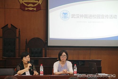 陈晓梅处长随后对仲裁委员会的职能、仲裁的优势等方面对现场的同学们进行了介绍。她用“一裁终局”、“程序灵活”、“选择自由”、“方便快捷”来形容仲裁的优势,并指出武汉仲裁委员会在几代人的努力下,取得了显著的成就,受案量连续十五年位列全国第一,成为了法制建设的名片。陈处长强调,随着经济的发展与社会的进步,越来越多的法律工作者认识到了仲裁在解决纠纷方面发挥着极其重要的作用,因此真诚地呼吁我院同学学好相关知识,积极投身于仲裁事业当中。