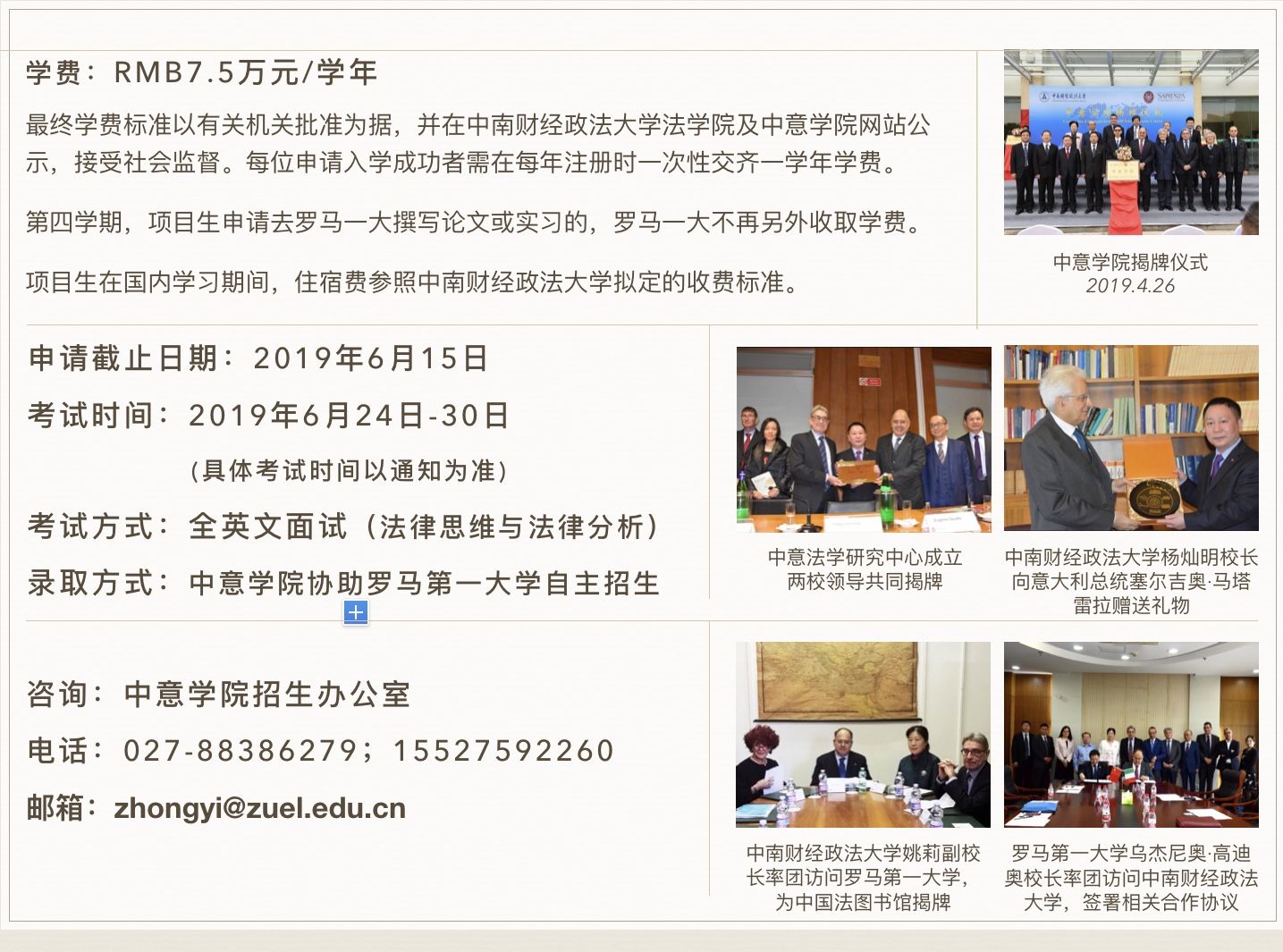 4.申报时需提交个人简历、个人陈述、研修计划、本科课程成绩单和学位证书复印件,以及意大利罗马第一大学要求的其他材料。