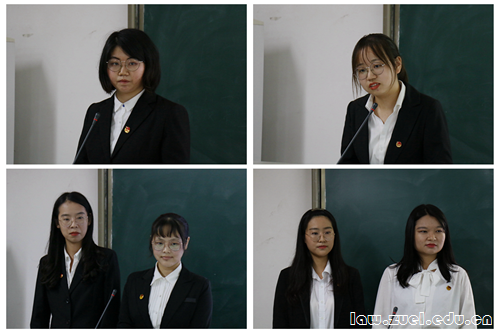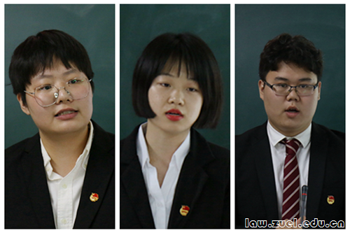 随后以王靖怡同学为代表的法商五剑客小分队立足于法学视角,思考疫情大背景下预付消费模式的诸多问题并提出应对策略,评委老师肯定其独特的问题意识和较强的学术修养,同时指出需进一步简化研究思路。刘秋月同学以南阳市淅川县为例,提出在后脱贫时代要以法律筑牢“返贫阻断防火墙”,巩固脱贫攻坚硕果,吕老师指出其分析问题的思路明确,但脱贫优化与法律制度之间的关联尚需更深入的探究。后一位答辩人刘鸿杰同学逻辑清晰、表述严谨,充分展现了他对《传染病防治法》背景下“医学观察”强制措施实施情况的法制思考。