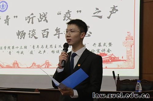 通讯员(法学院新闻中心)为深入推进习近平新时代中国特色社会主义思想铸魂育人,引导青年大学生坚定不移听党话、跟党走,11月12日下午,法学院分团委于文泰楼模拟法庭(二)举办法学院第十三期“青年马克思主义者培养工程”开幕式暨“‘青’听战‘疫’之声,畅谈百年之思”理论宣讲会。