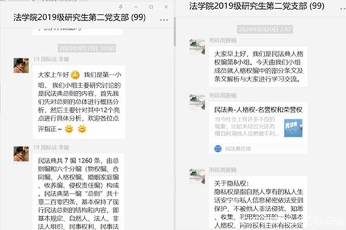 理论学习成效显著,在交流探讨中促进了科研成果的产出。为了加强对《民法典》的深入学习,使大家对《民法典》有更加深入的认识和应用。本支部组成了由宣传委员、各组组长牵头的十二个专题学习小组,监督线上自主学习与微信群定期交流研讨。在前期理论学习阶段,开展了为期两个多月的“每日学法”微信群线上打卡活动以及“轮流讲法”学习汇报活动,支部各小组每位成员都提交了学习日志与相关学习心得,并分别就民法典总则编、物权编、合同编、人格权编、婚姻家庭编、继承编、侵权责任编在微信群展开了系列汇报和交流。通过这一系列活动,使得支部成员加强了对《民法典》的学习和认识,能够发现和准确把握《民法典》的热点与难点,各组就此展开专题研究,形成学术研究成果十二篇。在理论学习与交流探讨中,激发了支部成员的科研火花,并形成了良好的研究成果。