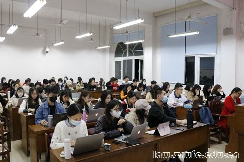 而后喻承跃法官向同学们介绍了律师的基本着装规定与准备工作事宜。介绍“律师参与法庭的行为规范”这一部分时,喻承跃法官结合法庭庄严性的要求,强调律师应理性围绕事实,客观阐述案件,做到谨言慎行。此外,他也建议律师在遵守法庭纪律的基础上,对法庭氛围有所把控。发言最后,喻承跃法官总结律师参与开庭的注意事项,鼓励同学们发散逻辑思维、提升法律素养,为今后的司法实践队伍注入青年力量。