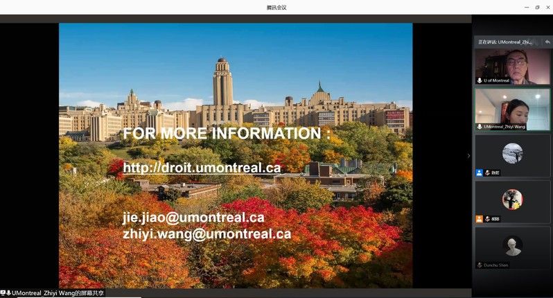 2020年11月24日晚上7点30分,加拿大蒙特利尔大学法学院通过腾讯会议在我院开展了线上招生宣讲会。主讲人为蒙特利尔大学法学院中国项目负责人、特聘教授焦杰老师和项目协调人王之一老师,众多法学院学子在线上积极参与了本次宣讲活动。