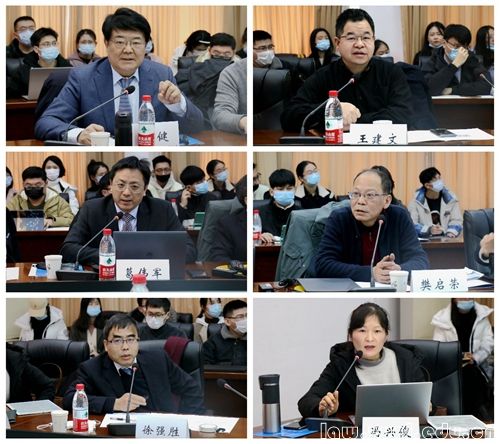第一单元为“主题演讲”环节,由雷兴虎教授担任主持人。中国法学会商法学研究会副会长、南京大学法学院、澳门科技大学法学院范健教授以《两大法系公司法的现代发展对中国公司法修订中防范制度性风险的启示》为题发表演讲,阐述两大法系公司法在推动社会改革与产业创新方面的贡献,指出其各自对我国公司法修订的启示。中国法学会商法学研究会常务理事、南京航空航天大学人文与社会科学学院院长王建文教授发表题为《欧美公司治理制度的内在逻辑与发展趋势》的主题演讲,通过对比欧美公司法,分析我国立法现状,围绕现代公司的基本架构问题进行展开,并提出对应解决方案。中国法学会商法学研究会常务理事、上海财经大学法学院副院长葛伟军教授以《英国公司法改革及对我国的启示》为题,阐述英国公司法的产生及发展历程,并从公司类型改革、股东合意的呈现、资本制度改革等角度分析英国公司法对我国公司法修改的借鉴意义。中国法学会商法学研究会常务理事、我院樊启荣教授作题为《保险公司社会任务的立法表达及其趋势》的演讲,分三阶段论述保险公司法的晚近改革及走向,希冀借鉴日本经验明确保险公司的公共性与社会角色,推动保险行业高质量发展。中国法学会商法学研究会常务理事、我院徐强胜教授以《公司法对公司治理的引领:不同资本主义阶段下日本治理结构的变革》为题,从公司治理的多元主义发展历程、日本商法对美德的借鉴与移植、国家发展与公司治理结构的调整三个方面解析了日本公司法对公司治理的引领作用。中国法学会商法学研究会理事、我院冯兴俊副教授发表题为《境外公司法财务会计制度及对我国的启示》的演讲,总结了英美、德国、法国、日本等有关公司财务会计报告(表)的商事立法,并指出我国应完善公司法上的财务治理与内外部关系调整的相关规则。