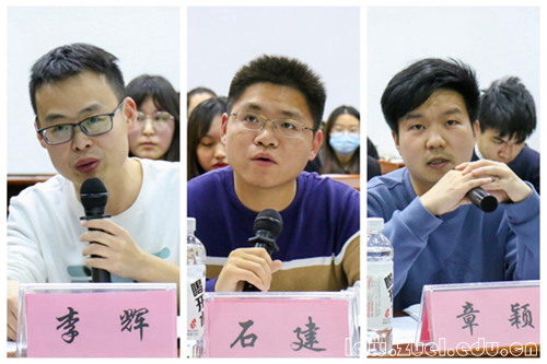 每组展示结束后,评委老师就报告内容等提出问题并对不足之处给出建议,答辩人积极互动,现场气氛活跃。在点评环节,各位评委既充分肯定了实践队伍选题紧跟新时代新政策,同时也对选题过于宏观、切入口过大、描述不清提出建议。三位评委鼓励同学们注重细节,脚踏实地,丰富实践内容,展示法科学子的专业素养。
