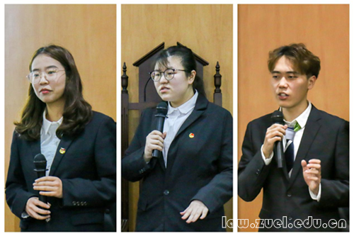 我院国际法学专业章颖博士、社会治理法学专业李辉博士、法学理论专业石建博士受邀出席本次活动并担任评委。十支寒假社会实践队伍结合PPT演示,从各个项目的选题背景、研究思路、调研数据以及最终结果展开介绍,深入探讨其法律价值,立志于为法治发展贡献一份力量。