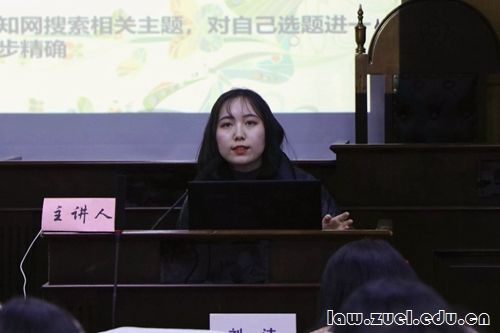 活动第一项,由刘洁老师致辞。刘洁老师指出,本次讲座旨在通过硕士研究生的经验分享,帮助本科同学们了解更多关于法考、考研、推免、留学等方面资讯,指导本科同学们更好地进行学业规划。