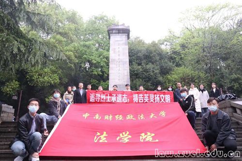 通讯员(樊雯雯 毛姜娜)为继承传统文化习俗,弘扬爱国主义精神,加强爱国主义教育,我院研究生会组织57名研究生代表于4月1日在辛亥革命纪念碑前举行以“追寻烈士承遗志,祷告英灵扬文明”为主题的清明节祭奠活动。法学院党委副书记李晓、法学院研究生培育办公室主任胡亚飞,以及法学院研究生辅导员刘洁参加了此次活动。借祭奠之际回顾、重温历史,了解革命烈士的英雄事迹,弘扬优秀文化传统。