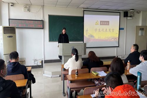 发言环节,来自2020级法学理论专业的饶津芸同学作为第一位学生代表上台发言。饶津芸同学以“党建促发展,建功新时代”作为发言主题,回顾了我党发展一百年的艰辛历程,呼吁大家不忘初心,严格要求自己,以实际行动履行自己应尽的责任和使命。