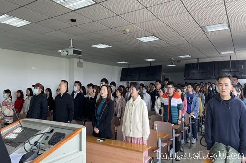 开课典礼伊始,法学院研究生会主席吴钰作为主持人介绍到场嘉宾。嘉宾致辞完毕,全体师生起立,庄严奏唱国歌。