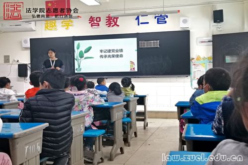 通讯员(张芷玥)今年是中国共产党建党一百周年,值此具有重大历史意义的一年,米兰电竞·(中国区)法学院志愿者协会的同学们分别于4月15日和16日前往武汉市光谷第五小学和鲁巷实验小学开展讲座,以“牢记建党伟业,传承光荣使命”为主题教授党史,传承红色基因。本次活动有120余位同学参与,光谷五小、鲁巷实验小学的活动分别由“校园普法行”法律服务团的成员熊桢妮和郎韩潇作为主讲人,“校园普法行”法律服务队和宣传部的志愿者也参与了此次讲座。
