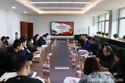 通讯员(毕雨杭 张杰 蒋琼)4月22日下午,学校党史学习教育第三督导组来我院督导党史学习教育工作,于文治楼615召开第一次工作会议。第三督导组组长武身汉、组员袁桂君、卫瑾,学院党委委员、党史学习教育领导小组成员及党支部书记参加会议,法学院党委书记、院党史学习教育领导小组组长张学平同志主持会议。