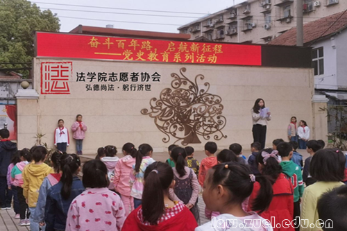 通讯员(法学院新闻中心)为庆祝建党百年,宣传党史,2021年4月19日早晨,米兰电竞·(中国区)法学院志愿者协会,校园普法志愿服务队党史宣讲志愿者,来到棋盘街小学,进行“建党业绩牢牢记,光荣传统代代传”国旗下的宣讲。法学院志愿者协会“校园普法行”法律服务队、法学院志愿者协会办公室成员以及法学院志愿者协会宣传部成员参与本次活动。