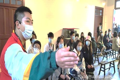图为首法2004班入党积极分子在中共五大会址纪念馆听取讲解员讲解
