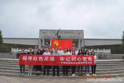 通讯员(法学院新闻中心)为深入开展党史学习教育,引导党员领导干部加深对中国共产党百年伟大奋斗历程的了解,做到学史明理、学史增信、学史崇德、学史力行。2021年6月19日至20日,法学院党委组织前往大悟县“中原突围纪念馆”“湖北省党员干部教育基地—金岭村”“鄂豫边区革命烈士陵园”开展“追寻红色足迹,牢记初心使命”党史学习教育,法学院党委委员、纪委委员、师生党支部书记、思政干部及党务秘书等共同参加本次活动。
