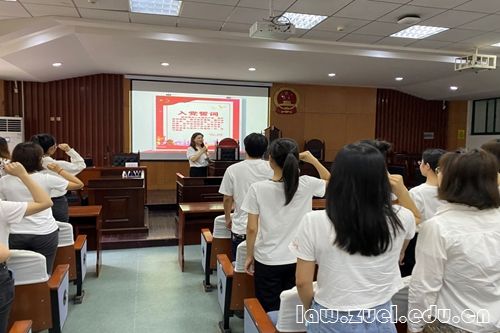 2021年6月24日下午两点,法学院研究生研究生文澜大讲堂——新时代研究生思政金课在文泰楼模拟法庭举办。法学院党总支曹丽萍老师及200余名研究生党员参与了本次活动。此次法学院有幸邀请到了武汉大学法学院廖奕教授为预备党员们讲授以“习近平法治思想:基本精神、核心要义与实践要求”为主题的思政金课。